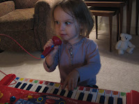 The number of instruments and music-related toys at their house is truly impressive. At one point in the afternoon, Devin played the organ while Leilani delicately picked out notes on the Steinway and Lukas and Emmy pounded on their kiddie-sized keyboards - creating what I'll charitably call "an untamed cacaphony of sound."